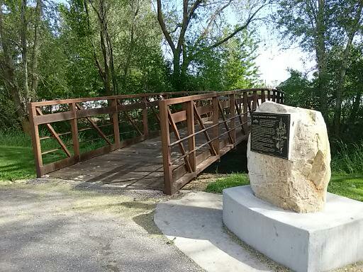 A pioneer monument with the story of Ira Merrill, the first Smithfield, Utah resident to die, stands on the northwest corner of Center and Main near the Library and Tithing Office.